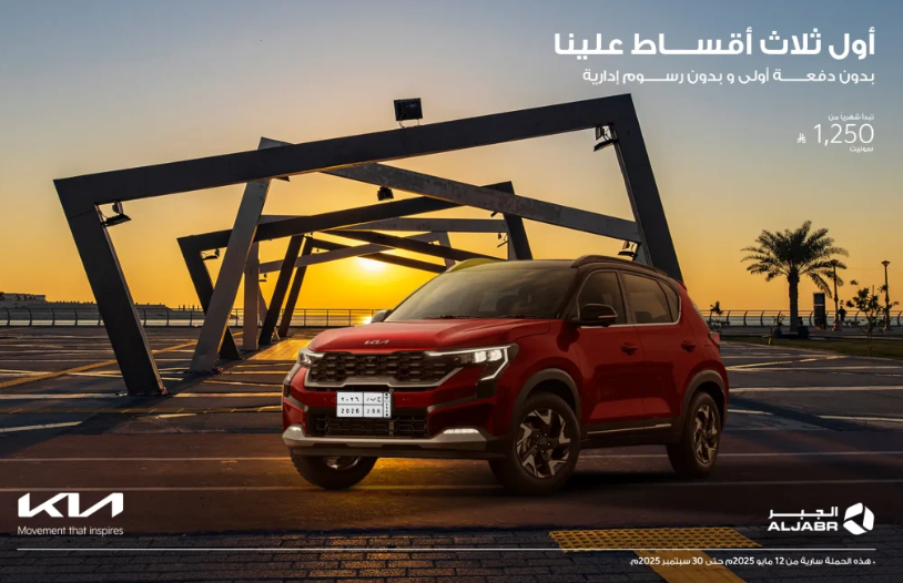 أعلنت شركة الجبر، الوكيل الرسمي لعلامة كيا في السوق السعودي، عن عرض خاص على كيا سونيت موديل 2025، تحت عنوان “أول 3 أقساط علينا”، والذي يتضمن عروض تمويل بقسط شهري يبدأ من 1.250 ريال بدون دفعة أولى أو رسوم إدارية وذلك حتى 30 سبتمبر.